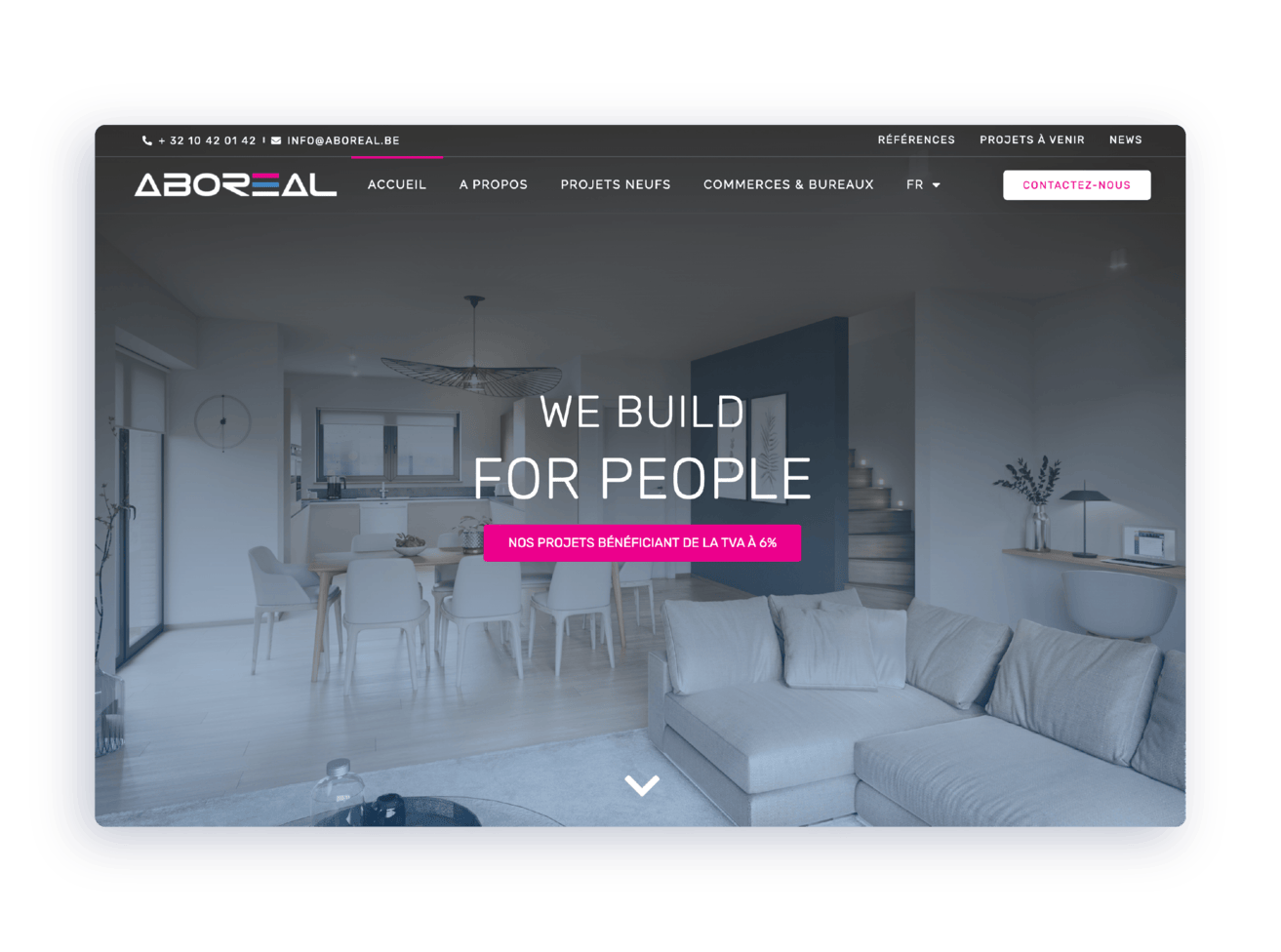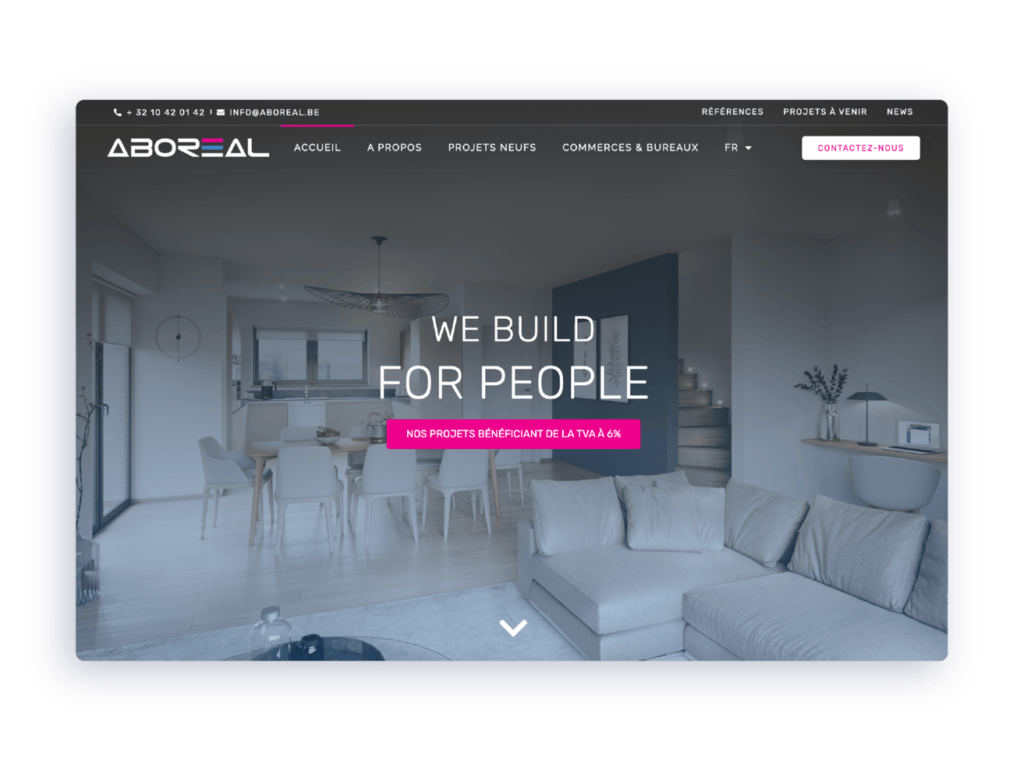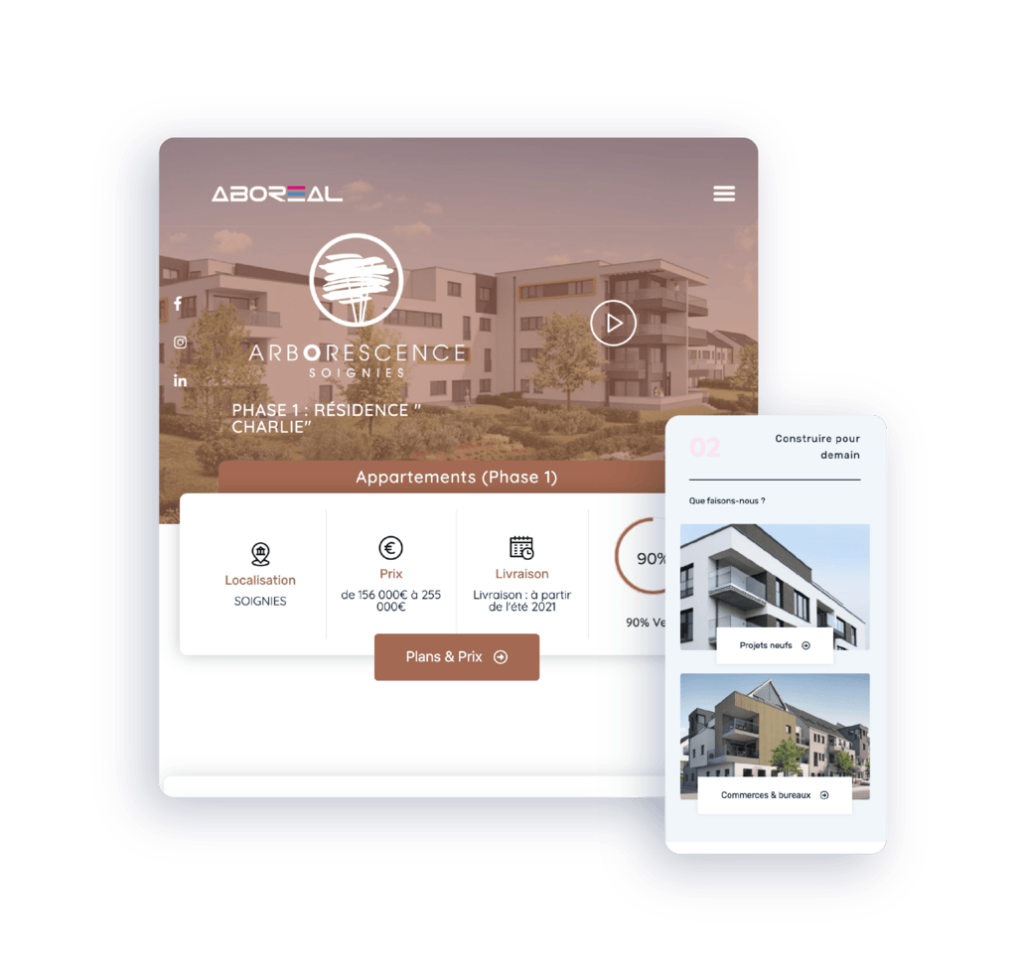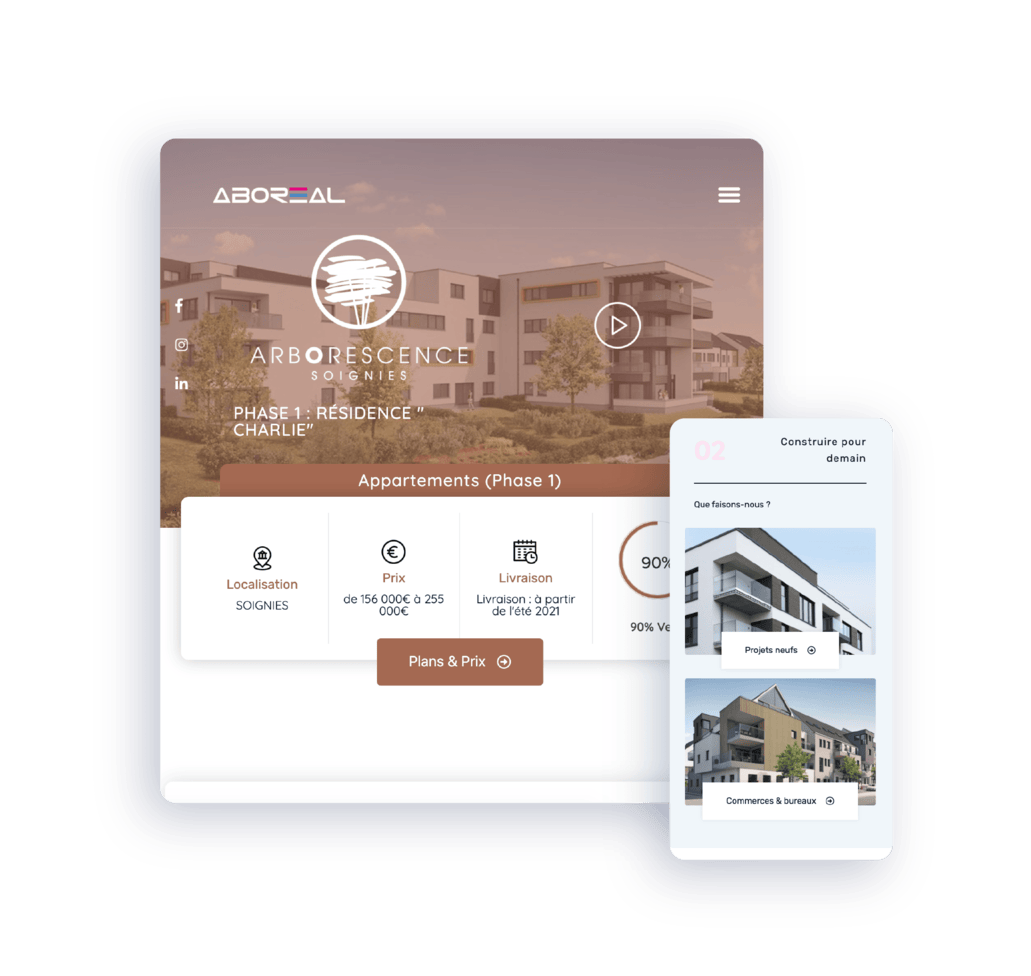 Ce promoteur wallon faisant partie du groupe IN RED souhaitait faire une refonte de leur site web vieillissant. Ils souhaitaient pouvoir y présenter leurs projets de manière détaillée mais aussi y faire apparaitre les appartements et maisons disponibles.