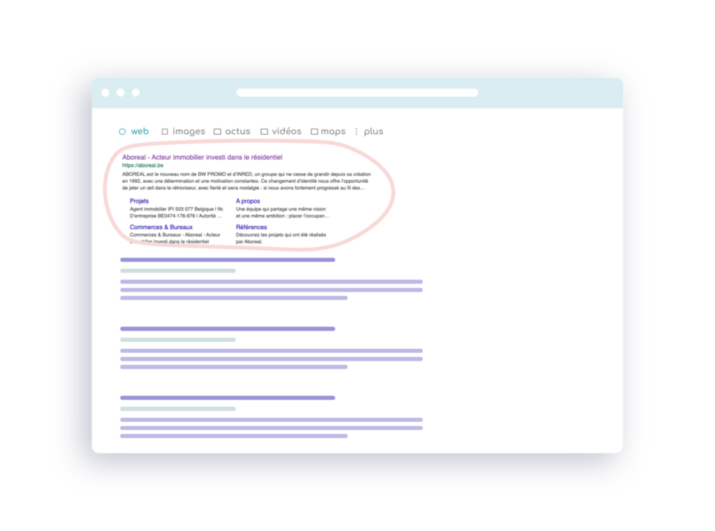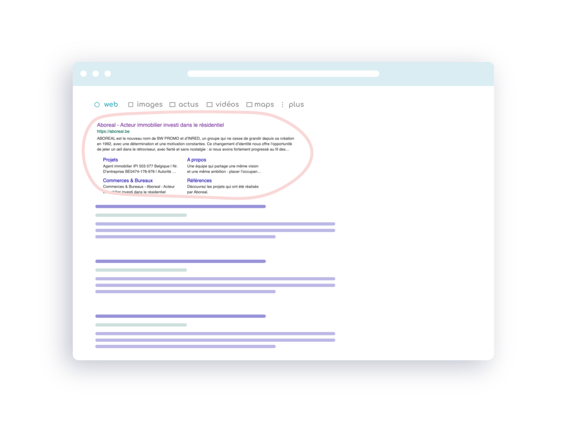 Lié au copywriting, le référencement naturel, aussi appelé SEO, fait partie du challenge. Sur base d’une liste de mots-clés établie avec notre client, nous travaillons son référencement pour qu’il soit placé le plus haut possible sur Google.