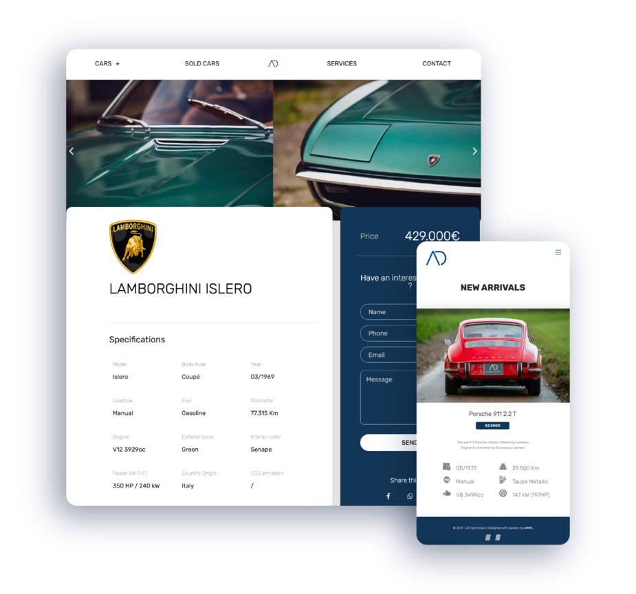 AD Sportscars est un garage spécialisé en véhicules de collection en périphérie de Bruxelles. Ils nous ont contacté pour donner un coup de frais à leur identité visuelle mais aussi pour leur créer un site web.