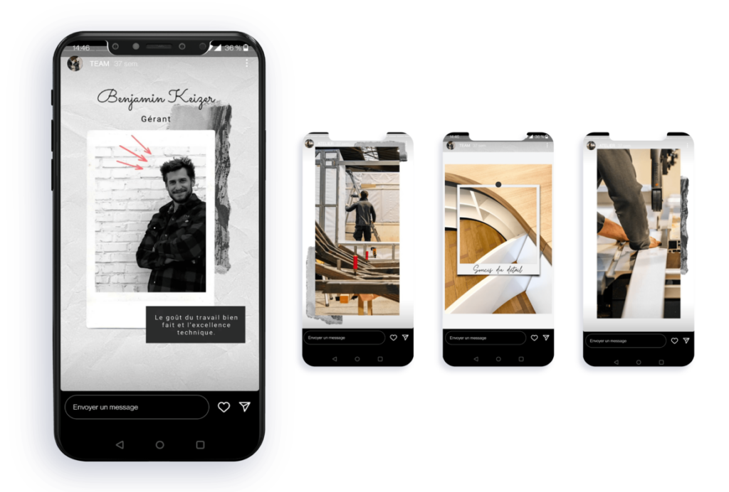 Afin de profiter des différentes fonctionnalités d’Instagram et de garder leur communauté active, nous créons des contenus à publier et nous postons régulièrement des stories. Celles-ci sont ensuite classées dans les « stories à la une ».